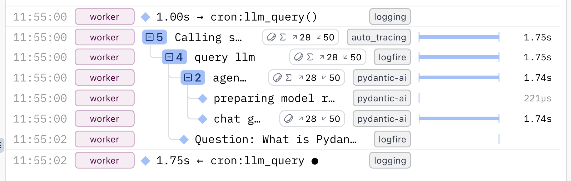 Good news: Logfire's integrations automatically set up many common metrics for you out of the box.